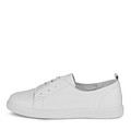Легкие белые кожаные кеды в минималистичном дизайне. За хорошую вентиляцию и комфортную посадку отвечают подкладка и стелька, изготовленные из натуральной кожи. Модель со шнуровкой и удобной петлей на вороте. Гибкая подошва из резины быстро адаптируется к движению стопы.