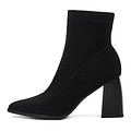 Женственные черные ботильоны с острым носом. Верх выполнен из плотного текстиля. Подкладка и стелька утеплены ворсином. Утолщенная резиновая подошва отличается прочностью и устойчивостью к истиранию. Фигурный каблук высотой 9,3 см грамотно распределяет нагрузку на стопы.