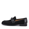 Эффектные черные лоферы из велюра с кожаными вставками. За комфорт стоп и идеальную посадку пары отвечают подкладка и стелька, выполненная из натуральной кожи. Гибкая и легкая подошва из материала ТЭП поддерживает стопы в оптимальном положении.