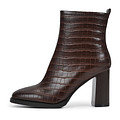 Утонченные коричневые ботильоны с тиснением под крокодила. Верх изготовлен из влагонепроницаемой кожи из спилка. Мягкие подкладка и стелька из ворсина обеспечивают уют и тепло в прохладную погоду. Утолщенная резиновая подошва отличается прочностью и хорошим сцеплением. Устойчивый каблук высотой 9 см грамотно распределяет нагрузку на ноги.