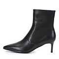 Эффектные черные кожаные ботильоны на изящном каблуке. Пара с подкладкой и стелькой, выполненными из мягкого ворсина. Прочная резиновая подошва формирует устойчивость на любых покрытиях. Модель с застежкой на молнию.
