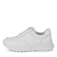 Бежевые кожаные кроссовки идеально дополнят повседневный гардероб. Легкая модель с кожаной подкладкой и стелькой, гарантирующими отличный воздухообмен. Гибкая подошва из резины обеспечивает комфорт при движении. Шнуровка надежно фиксирует пару на ноге, а утолщенный ворот бережно поддерживает зону щиколоток.