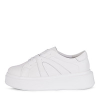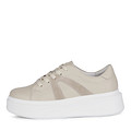 Бежевые кожаные кеды. Комфорт стоп обеспечивают кожаная подкладка и стелька. Гибкая подошва из полиуретана гарантирует оптимальную поддержку. Пара отлично впишется в образы с брюками, джинсами и шортами.