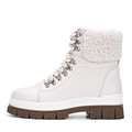 Женские зимние ботинки с усиленной шнуровкой дизайнеры марки выполнили из зернистой кожи нежного кремового оттенка, сделав их женственнее. Трендовая тедди отделка канта и язычка добавляет уют образу. Широкая двухкомпонентная подошва с наплывом отвечает за отличное сцепление и сохранение тепла в снежную погоду.
