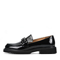 Базовые черные лоферы из лакированной кожи. Подкладка из натуральной кожи и мягкая перфорированная стелька из шевро обеспечивают стопам дополнительный комфорт в течение всего дня. Высокая платформа из материала ЭВА хорошо амортизирует нагрузку. Модель с акцентным декором из цепочки.