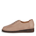 Практичные бежевые кожаные полуботинки с декоративной перфорацией. Комфорт стоп формируют подкладка и стелька, выполненные из натуральной кожи. Гибкая подошва из ПВХ отличается легкостью и прочностью. Модель со шнуровкой гармонично дополнит образы с брюками.