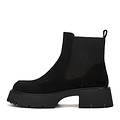 Базовые черные челси на платформе. Материал верха - бархатистый спилок. Подкладка и стелька утеплены мягким ворсином. Высокая тракторная подошва из резины обеспечивает устойчивость на любой поверхности.