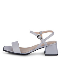 Базовые кожаные босоножки на широком графичном каблуке. Подкладка выполнена из натуральной кожи, стелька изготовлена из нежной кожи шевро. Устойчивый каблук высотой 50 мм формирует оптимальное распределение нагрузки по стопе.  Модель с застежкой на классический замок с пряжкой.
