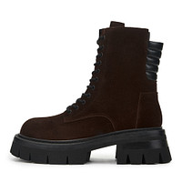 Стильные теплые ботинки на платформе в лаконичном черном исполнении. Верх выполнен из бархатистого спилка. Мягкий кожаный ворот бережно поддерживает щиколотки. Шерстяная стелька поддерживает комфорт стоп при минусовой температуре. Высокая подошва из материала ТЭП с выраженными протекторами отличается легкостью, морозоустойчивостью и хорошим сцеплением с любой поверхностью.