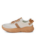 Бежевые текстильные кроссовки идеально дополнят повседневный гардероб. Легкая модель с подкладкой и стелькой из мягкого дышащего текстиля. Высокая изогнутая подошва из материала ЭВА обеспечивает комфорт при движении. Шнуровка надежно фиксирует пару на ноге, а утолщенный ворот бережно поддерживает зону щиколоток.