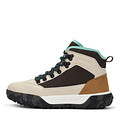 Яркие ботинки в стиле треккинговой обуви помогут создать динамичный образ в стиле спорт-шик. Верх - плотный текстиль и современная искусственная кожа. Гармоничное сочетание цветов и игра фактур выглядит стильно и необычно. Подкладка и стелька утеплены натуральной шерстью. Высокая подошва с абстрактным принтом выполнена из материала ЭВА, который славится своими амортизирующими свойствами и хорошим сцеплением с поверхностью.