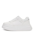 Спортивные белые кроссовки. Верх выполнен из современной искусственной кожи, которая отличается прочностью и легкостью в уходе. Текстильные подкладка и стелька обеспечивают комфорт стоп при длительной носке. Высокая подошва из полиуретана отличается легкостью, прочностью и хорошими амортизирующими свойствами.