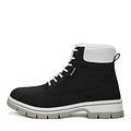 Лаконичные черно-белые тимберленды могут стать вашей базовой обувью на холодный сезон. Верх выполнен из современной искусственной кожей с эластичной контрастной резинкой на голенище. Подкладка и стелька утеплены искусственной шерстью. Утолщенная ребристая подошва из материала ТЭП отличается прочностью и обеспечивает хорошее сцепление с любой поверхностью.