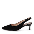 Элегантные черные туфли с открытой пяткой. Трендовая модель «слингбэк» выполнена из мягкого велюра. Материал подкладки — натуральная кожа. Стелька изготовлена из нежной кожи шевро. Тонкий каблук высотой 55 мм визуально делает силуэт изящнее.