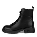 Базовые черные кожаные ботинки с высокой шнуровкой. За комфорт стоп отвечают подкладка и стелька, выполненные из мягкого ворсина. Рифленая резиновая подошва обеспечивает устойчивость на любых покрытиях даже в дождь. Модель дополнена удобной застежкой на молнию. Практичная петля на голенище ускоряет процесс фиксации обуви.
