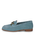 Акцентные синие лоферы из бархатистого велюра с трендовым квадратным мысом. Комфорт стоп обеспечивают кожаная подкладка и стелька, выполненная из нежной кожи шевро. Гибкая резиновая подошва гарантирует оптимальную поддержку. Пара отлично впишется в образы с брючными костюмами, воздушными платьями и юбками.