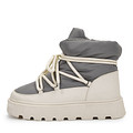 Уютные серые сапоги-дутики из плотного текстиля и мягкой кожи из спилка. Пара утеплена мягкой натуральной шерстью на подкладке и стельке. Высокая рифленая подошва из ТЭП обеспечивает надежную защиту от влаги и холода и устойчива на любой поверхности.