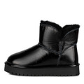 Эффектные женские угги из черной лакированной кожи. Пара утеплена мехом и шерстью. Рифленая подошва гарантирует устойчивость на любых покрытиях даже в дождь. Пара подойдет для длительных прогулок и загородного отдыха в холодную погоду.