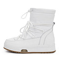 Стильные белоснежные дутики. Модель с комбинированным верхом из непромокаемого текстиля и кожи из спилка. Подкладка и стелька изготовлены из мягкой натуральной шерсти, гарантирующей комфорт стоп в любую погоду. Высокая подошва из прочной резины обеспечивает отличное сцепление с поверхностью. Пара дополнена застежкой на молнию и шнуровкой. Ботинки в стиле moonboots хорошо подойдут для длительных прогулок и активного отдыха.