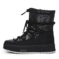 Акцентные женские черные «дутики» с принтом. Модель с комбинированным верхом из прочного текстиля и кожи из спилка. Подкладка и стелька изготовлены из мягкой натуральной шерсти, гарантирующей комфорт стоп в любую погоду. Высокая подошва из прочной резины обеспечивает отличное сцепление с поверхностью. Пара дополнена застежкой на молнию и шнуровкой. Ботиинки в стиле moonboots хорошо подойдут для длительных прогулок и активного отдыха.