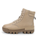 Комфортные бежевые ботинки на массивной подошве. Верх изготовлен из мелкозернистой натуральной кожи. Подкладка и стелька из пушистого натурального меха хорошо защищают стопы от холода. Рифленая подошва из материала ТЭП гарантирует устойчивость на любых покрытиях, а высокий рант обеспечивает защиту от влаги. Модель с прочной шнуровкой и удобной застежкой на молнию.