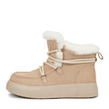 Ультралегкие бежевые ботинки с функциональной шнуровкой. Материал верха - бархатистый спилок. Подкладка и съемная стелька из густой натуральной шерсти обеспечивают комфортную терморегуляцию стоп. Уникальный протектор подошвы из ТЭП в виде мелких пирамид отвечает за улучшенное сцепление с любой поверхностью.