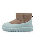 Ультрамягкие и легкие угги выполнены из натурального спилка серого оттенка. Подкладка и стелька утеплены густой шерстью. Подошва из материала ТЭП с выраженным протектором улучшает сцепление с любой поверхностью. В комплекте идут полиуретановые галоши, которые надежно защищают ноги от промокания.