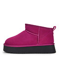 Яркие короткие угги в насыщенном розовом оттенке. Верх выполнен из бархатистого и надежного спилка. Подкладка и стелька утеплены натуральной шерстью. Высокая черная подошва из материала ТЭП гарантирует оптимальную поддержку стоп и устойчивость на любой поверхности. Петля на задней части модели облегчает процесс надевания.