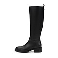 Стильные черные сапоги на низкой каблуке. Материал верха - практичная кожа из спилка. Подкладка и стелька утеплены мягким ворсином. Утолщенная резиновая подошва отличается прочностью и хорошим сцеплением с поверхностью.