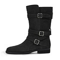 Актуальные черные полусапоги в байкерском стиле. Бархатистый верх дополнен декоративными ремнями и пряжками. Подкладка и стелька утеплены мягким ворсином. Утолщенная резиновая подошва отличается прочностью и надежным сцеплением с поверхностью.
