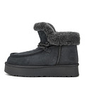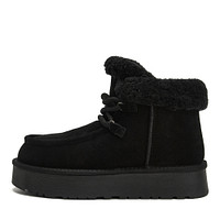 Ботинки с широкой протекторной подошвой, подкладом из натуральной шерсти сшили из спилка. Цвет модели - серый. Зимняя пара с рельефным швом, подчеркивающим округлый мыс. Подошва из ТЭП прочная и устойчива к истиранию.