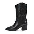 Стильные черные казаки объединили тренды на ковбойскую эстетику и эффект мятой кожи. Подкладка и стелька утеплены мягким ворсином. Утолщенная резиновая подошва отличается прочностью и хорошим сцеплением с поверхностью. Широкий скошенный каблук высотой 7,2 см грамотно распределяет нагрузку на стопы.