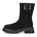 Минималистичные черные полусапоги с эффектной декоративной пряжкой. Верх выполнен из прочного бархатистого спилка. Подкладка и стелька утеплены натуральной шерстью для оптимальной терморегуляции стоп на улице и в помещении. Высокая подошва из материала ТЭП с выраженными протекторами отличается легкостью, морозоустойчивостью и надежным сцеплением с любой поверхностью.