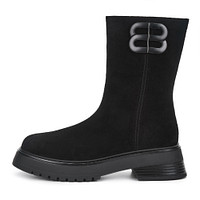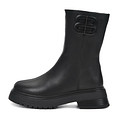 Минималистичные черные полусапоги с эффектной декоративной пряжкой. Верх выполнен из гладкой кожи из спилка с влагонепроницаемым покрытием. Подкладка и стелька утеплены натуральной шерстью для оптимальной терморегуляции стоп на улице и в помещении. Высокая подошва из материала ТЭП с выраженными протекторами отличается легкостью, морозоустойчивостью и надежным сцеплением с любой поверхностью.