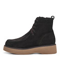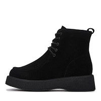 Минималистичные коричневые ботинки со шнуровкой. Верх выполнен из бархатистого спилка, подкладка и стелька утеплены натуральной шерстью. Боковая молния облегчает процесс фиксации пары. Высокая подошва из материала ТЭП обеспечивает надежную защиту от влаги и холода и устойчива на любой поверхности.