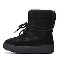 Стильные чёрные ботинки выполнили из искусственной шерсти 70% и спилка 30%. Внутреннюю подкладку изготовили из натуральной шерсти. Модель со шнуровкой, оплетающей голенище, дополнили на заднике петлёй. Подошва из ТЭП сочетает устойчивость и безопасность.