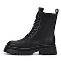 Минималистичные черные ботинки с высокой шнуровкой. Верх выполнен из гладкой кожи из спилка. Подкладка и стелька утеплены натуральной шерстью для оптимальной терморегуляции. Высокая подошва из материала ТЭП с выраженными протекторами отличается легкостью, морозоустойчивостью и хорошим сцеплением с любой поверхностью. Модель с удобной застежкой на молнию.