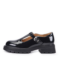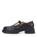 Минималистичные черные кожаные туфли "Мэри Джейн". За комфорт стоп отвечают мягкая стелька и подкладка, выполненные из натуральной кожи. Высокая подошва из материала ТЭП поддерживает стопы в оптимальном положении. Изящная перемычка на подъеме надежно фиксирует обувь на ноге.