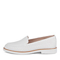 Перфорированные белые туфли — удачный повседневный выбор для тех, кто любит стиль унисекс и брюки различных фасонов. Модель сшита из мягкой натуральной кожи, не натирающей ноги. Подошва сделана из ЭВА — полимерного материала пористой структуры, которая хорошо поддерживает стопу, сохраняет тепло, не пропускает воду и легко чистится.