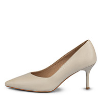 Классические туфли-лодочки бежевого цвета. Верх демисезонной обуви выполнен из кожи шевро. За комфорт стоп отвечает кожаная подкладка и мягкая перфорированная стелька из шевро. Модель дополнена изящным каблуком высотой 75 мм и нескользящей резиновой подошвой.