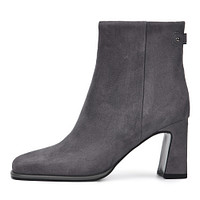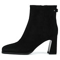 Минималистичные черные ботильоны из мягкого ворсистого велюра. Пара с подкладкой и стелькой, выполненными из натуральной кожи. Графичный каблук высотой 79 мм формирует оптимальный уровень поддержки. Модель с удобной застежкой на молнию.