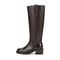 Актуальные темно-коричневые сапоги в стиле жокейской обуви. Верх выполнен из гладкой натуральной кожи. Утепленная подкладка из ворсина создает уют и защищает от холода. Утолщенная тунитовая подошва гарантирует надежность и долговечность.
