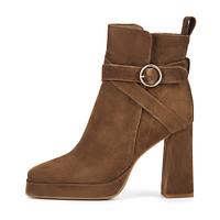 Минималистичные коричневые ботильоны из мягкого ворсистого велюра. Пара утеплена ворсином, обеспечивающим надежную защиту от холода. Графичный каблук высотой 110 мм формирует оптимальный уровень поддержки. Модель с удобной застежкой на молнию и практичной петлей на голенище.