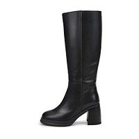 Минималистичные высокие сапоги в трендовом бордовом оттенке. Кожаный верх надежно защищает ноги от влаги и холода. Подкладка и стелька из натурального меха сохраняет тепло. Утолщенная резиновая подошва обеспечивает отличное сцепление с любой поверхностью. Широкий устойчивый каблук высотой 80 мм грамотно распределяет нагрузку на стопы. Лаконичный дизайн с округлым мысом выглядит женственно без ущерба комфорту.