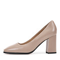 Классические бежевые кожаные лодочки на широком каблуке. Комфорт стоп обеспечивают мягкая перфорированная стелька и подкладка, выполненные из натуральной кожи. Устойчивый каблук высотой 80 мм формирует оптимальный уровень поддержки.