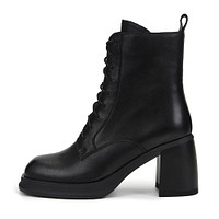 Эффектные молочные ботильоны с акцентной шнуровкой. Натуральная кожа верха надежно защищает от влаги и ветра. Подкладка и стелька утеплены ворсином. Молния ускоряет процесс надевания обуви. Плотная резиновая подошва отличается прочностью и хорошей амортизацией ударной силы на стопы. Широкий каблук высотой 7 см устойчив и грамотно распределяет нагрузку.