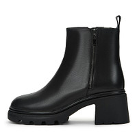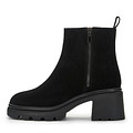 Базовые черные ботильоны из бархатистого спилка. Подкладка и стелька модели утеплены натуральной шерстью. Боковая молния быстро фиксирует пару на ногах, а петля на задней части облегчает процесс надевания. Утолщенная тракторная подошва из материала ТЭП отличается прочностью и хорошим сцеплением с поверхностью.