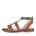 Стильные римские сандалии – для тех, кто ценит комфорт и следует моде. Трендовая вещь уже несколько сезонов остается популярной. Модель полностью выполнена из натуральной кожи в комбинации двух цветов, светло-коричневого и зеленого. Ремешок с застежкой-пряжкой вокруг щиколотки подчеркнет стройность ног. Еще одна пряжка на союзке позволяет регулировать обувь по полноте.