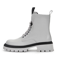 Трендовые черные ботинки на шнуровке. Материал верха - матовая кожа из спилка. Подкладка и стельки утеплены ворсином. Модная тракторная подошва из материала ТЭП обеспечивает отличное сцепление с любой поверхностью.