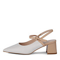 Лаконичные молочные кожаные туфли-слингбэки. Подкладка из натуральной кожи и стелька из кожи шевро формируют дополнительный комфорт стоп. Широкий каблук высотой 25 мм обеспечивает оптимальную поддержку. Пара гармонично дополнит образы с платьями, брюками и юбками.